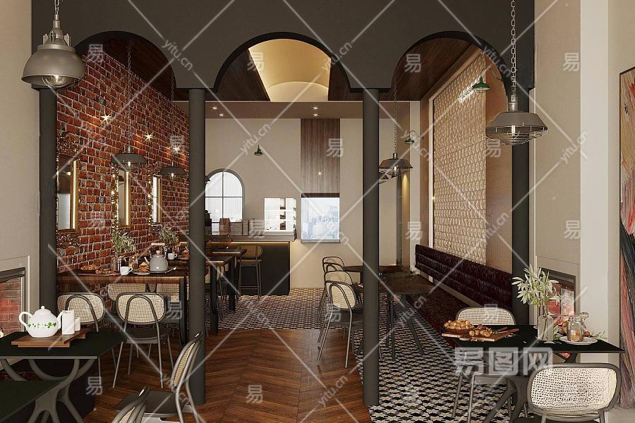 侘寂中古风西餐厅 饮料食品组合 红砖墙