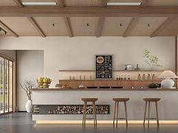 侘寂民宿中餐厅 咖啡吧台 景观摆件
