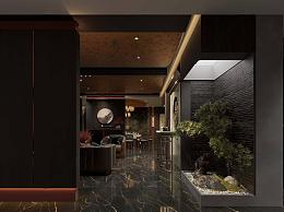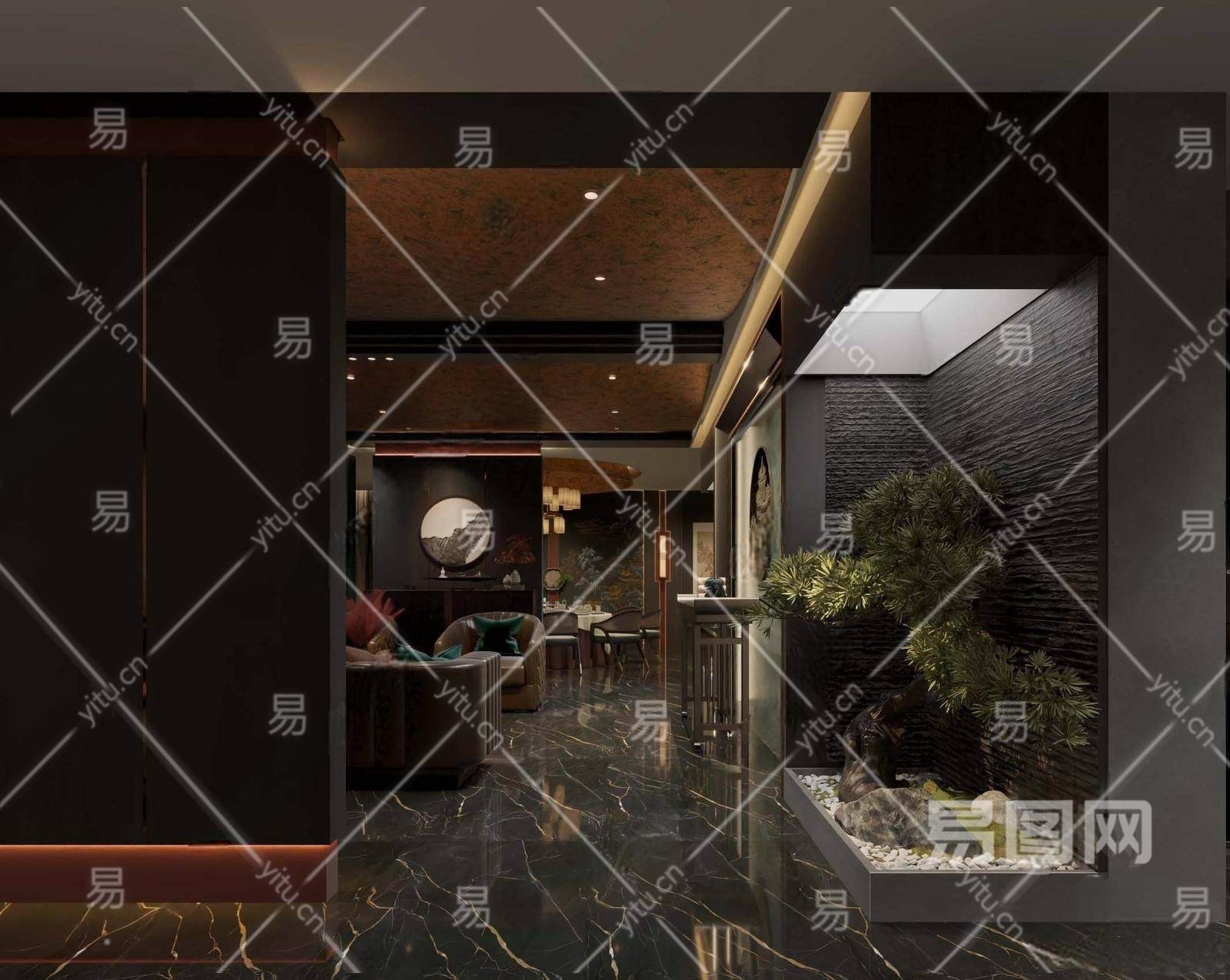 新中式中餐厅 包厢 餐桌椅组合 绿植景观 沙发组合