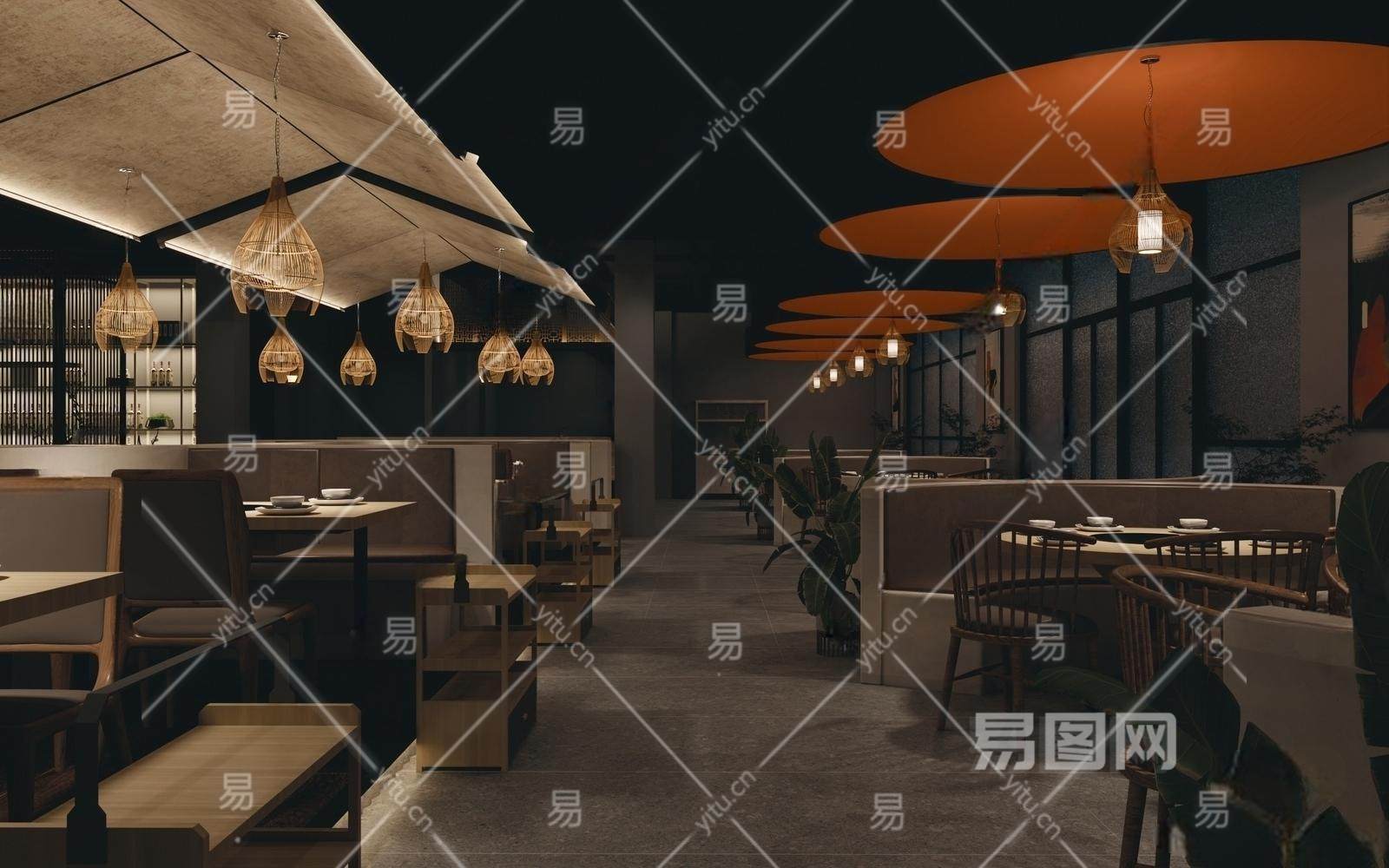 现代中餐厅 西餐厅 餐桌椅组合 吊灯