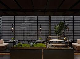现代中餐厅 餐桌椅 毛石 屏风 饰品 食盒