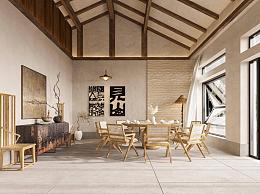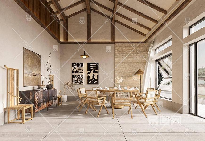 现代民宿中餐厅 餐桌椅组合 落地灯