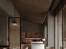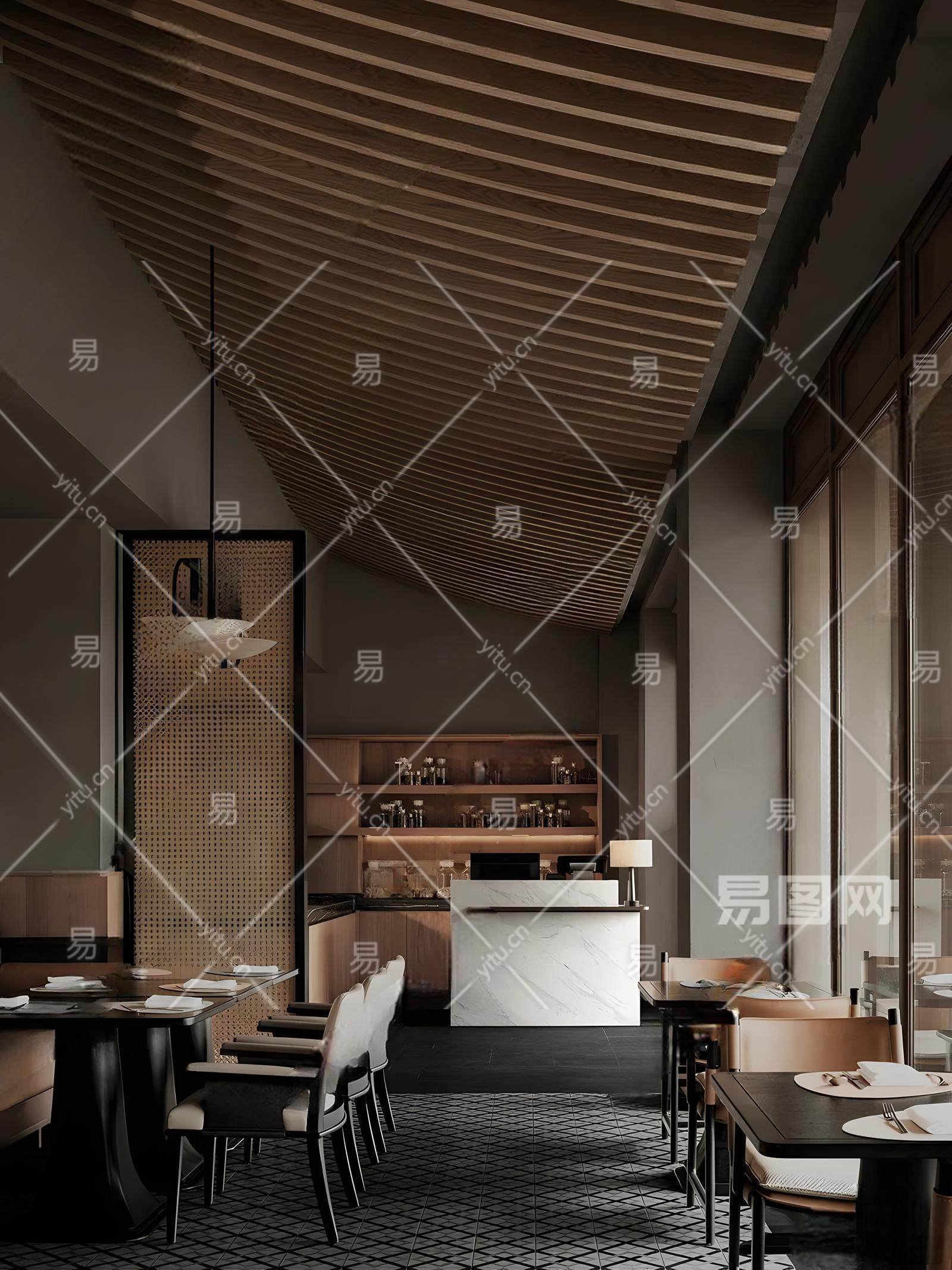 现代西餐厅 餐桌椅组合 吊灯 酒柜