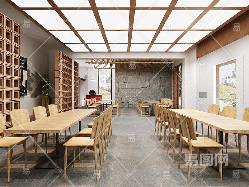 现代闽南中餐厅 餐桌椅组合 挂画 前台