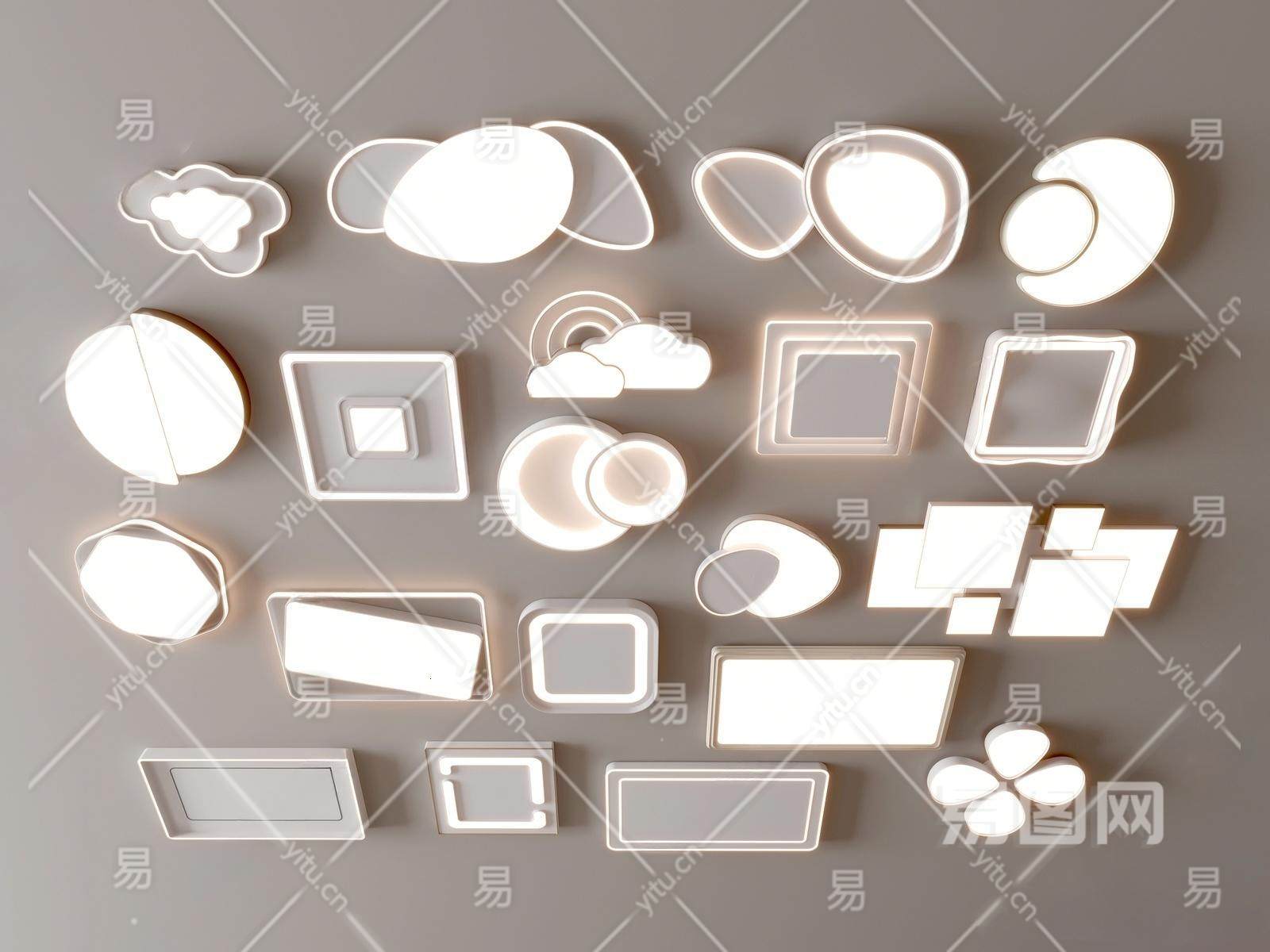 10北欧吸顶灯组合,方形吸顶灯,圆形吸顶灯SU模型