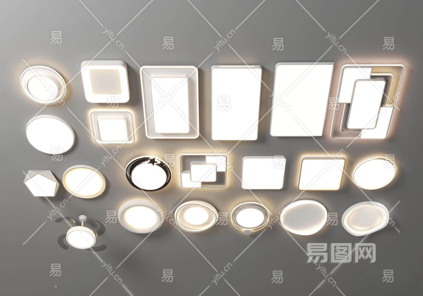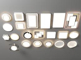 01现代吸顶灯组合,圆形吸顶灯,风扇吸顶灯SU模型