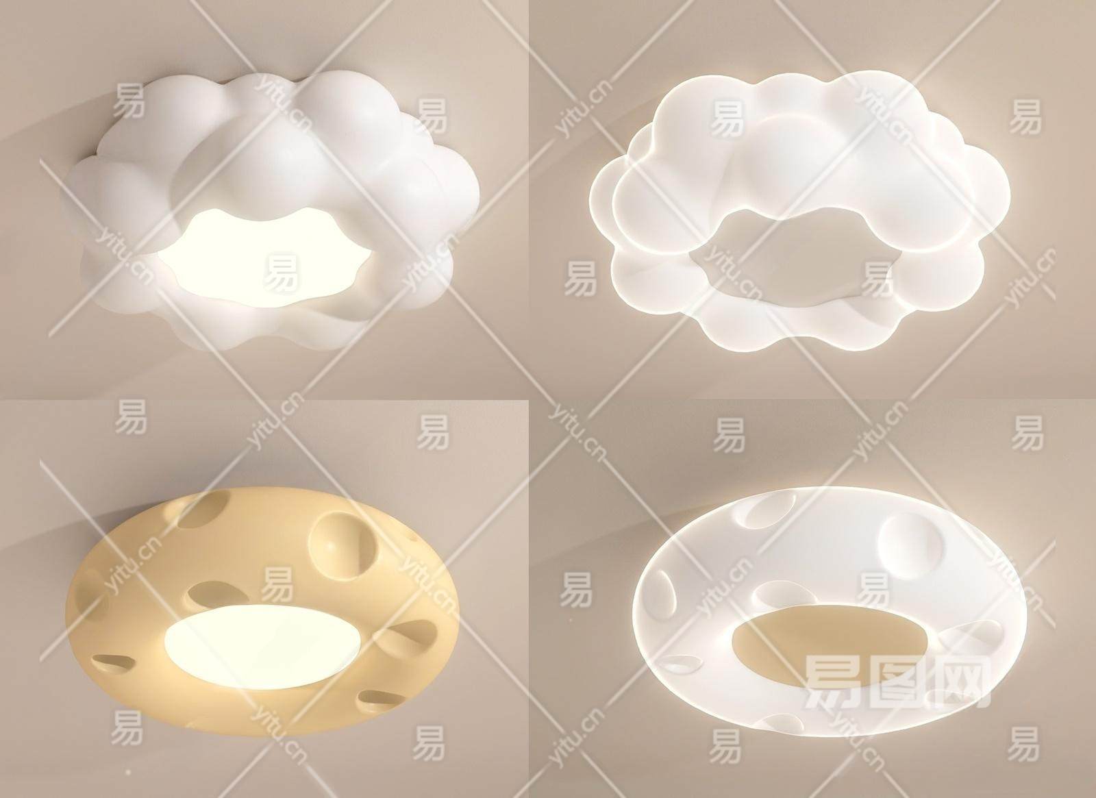 36现代儿童房吸顶灯组合,奶油风吸顶灯SU模型