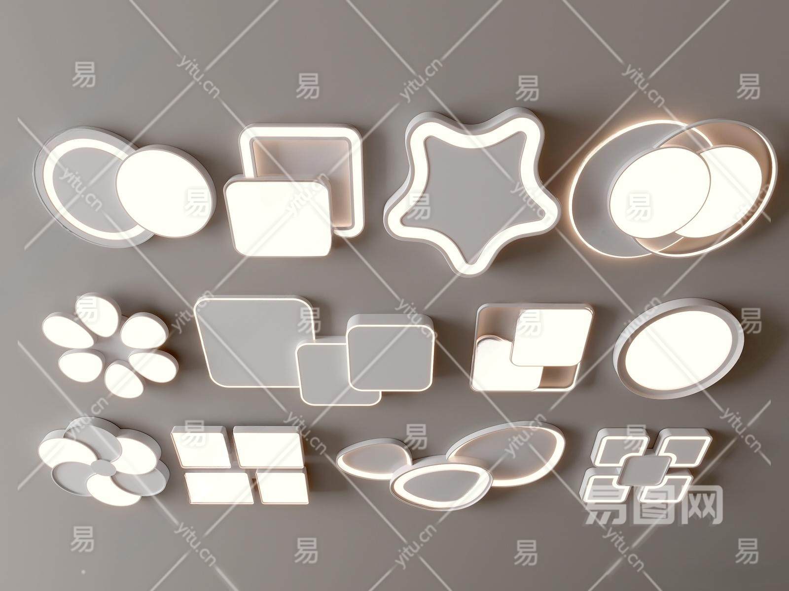 39现代吸顶灯组合,儿童房吸顶灯,花朵,五角星吸顶灯SU模型