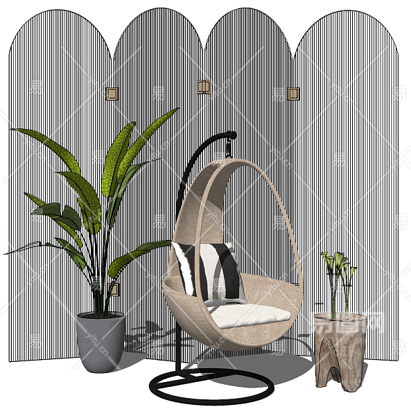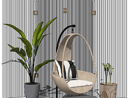 27现代家具藤编编织休闲吊椅屏风 su草图模型下载