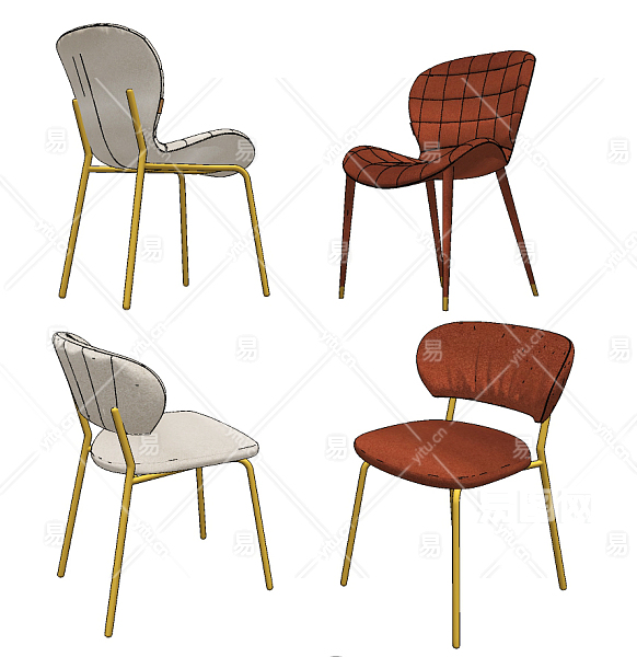 现代单椅组合,su草图模型下载
