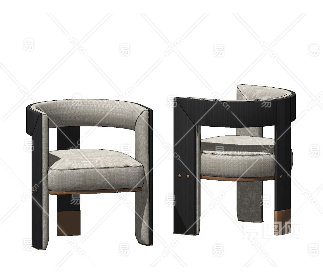 porustudio 现代实木布艺单椅,休闲椅su草图模型下载