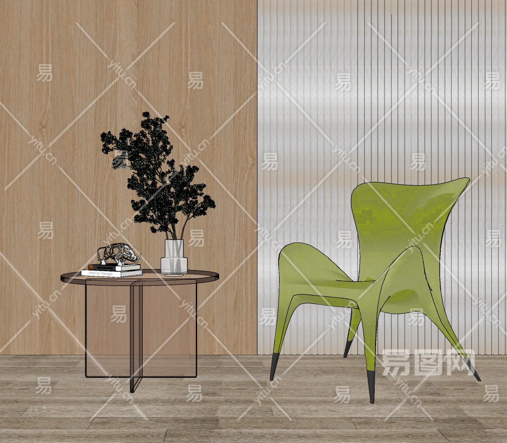 现代绒布休闲椅边几,花瓶摆件su草图模型下载