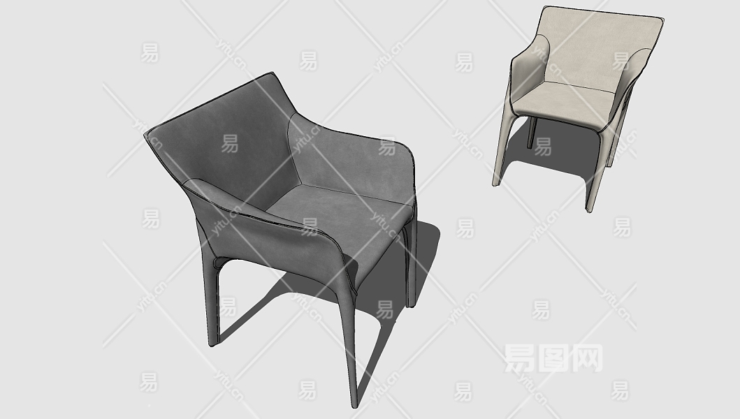 简约时尚皮革单人休闲椅子,餐椅su草图模型下载