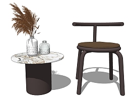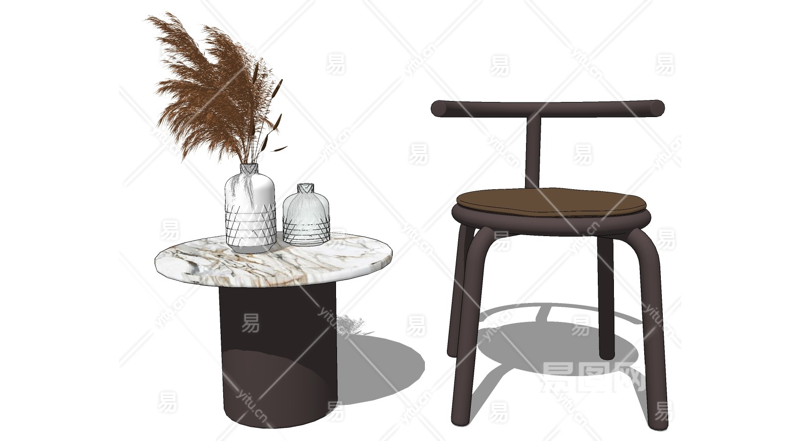 金属单人休闲椅子,凳子,边几花瓶su草图模型下载