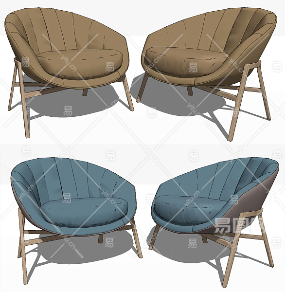现代单人休闲椅,椅子su草图模型下载