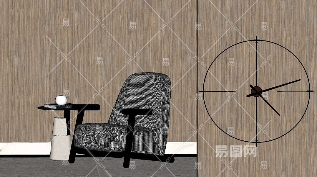 休闲椅,圆形边几铁艺石英钟3d模型下载su草图模型下载