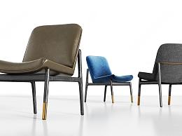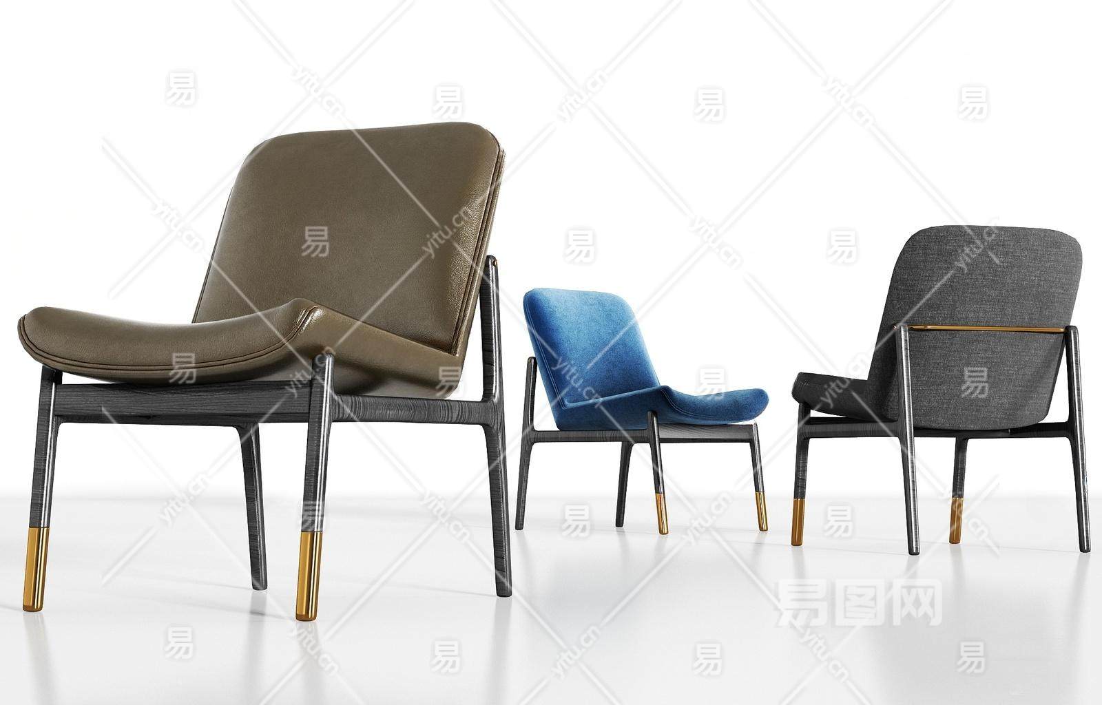 现代实木皮革绒布单椅组合