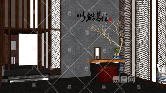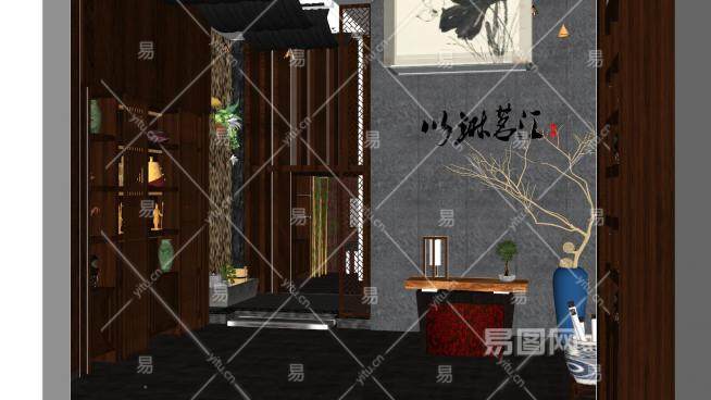 新中式玄关SU模型下载_sketchup草图大师SKP模型