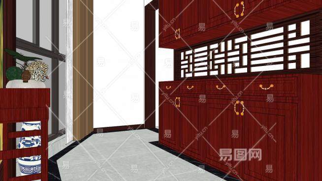 新中式入门玄关SU模型下载_sketchup草图大师SKP模型