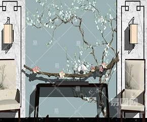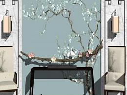 新中式端景玄关背景墙SU模型下载_sketchup草图大师SKP模型