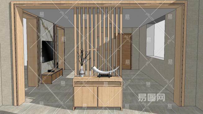 中式玄关背景墙镂空隔断SU模型下载_sketchup草图大师SKP模型