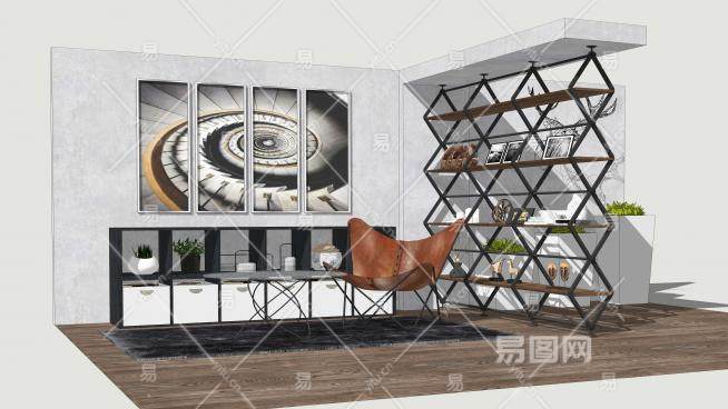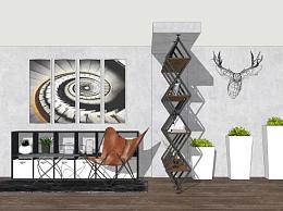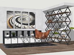 工业风格隔断架子屏风玄关地毯SU模型下载_sketchup草图大师SKP模型