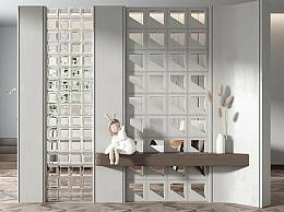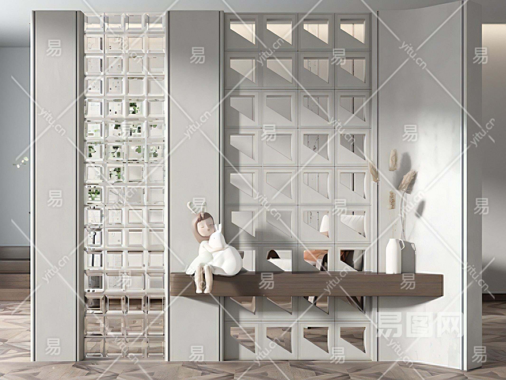 侘寂装饰性玄关玄关隔断玻璃隔断玄关镂空隔断SU模型