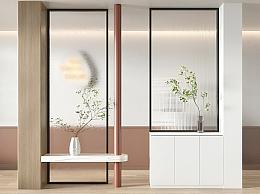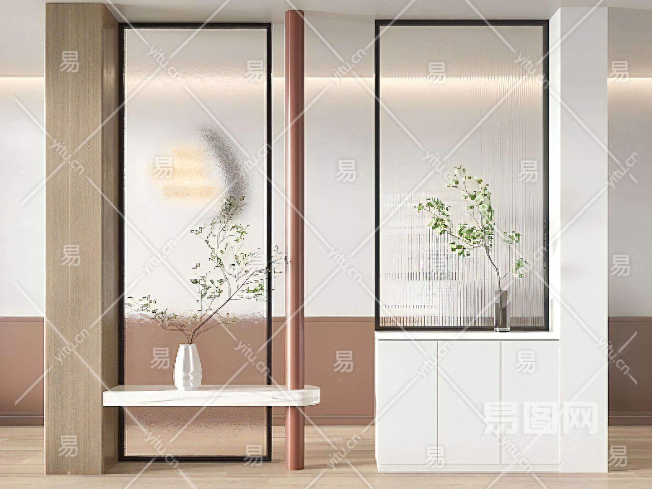 现代功能性玄关玄关隔断玄关柜玻璃隔断SU模型