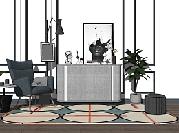 20现代轻奢玄关端景柜餐边柜摆台条案装饰柜斗柜摆件椅子电视柜su草图模型下载