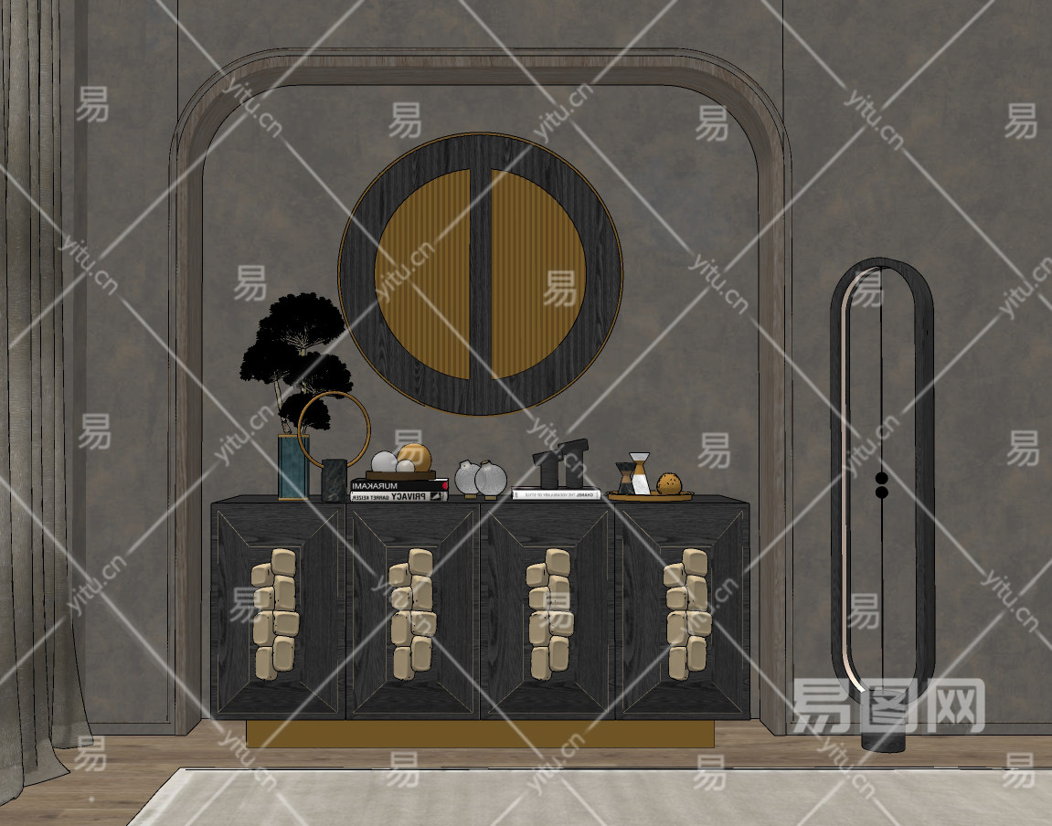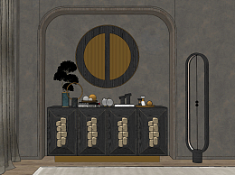 新古典边柜玄关柜花瓶摆件su草图模型下载