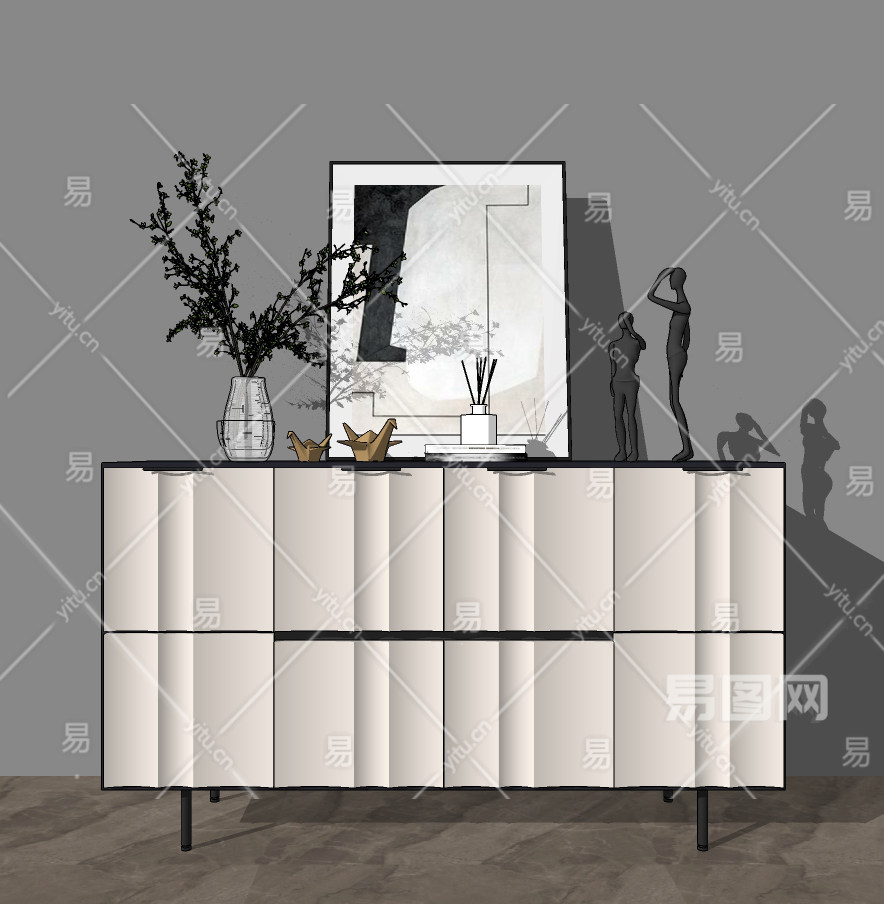 现代玄关柜,装饰柜 (3)su草图模型下载