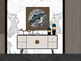 新中式玄关柜子 边柜 电视柜 雕塑摆件 饰品摆件花瓶su草图模型下载