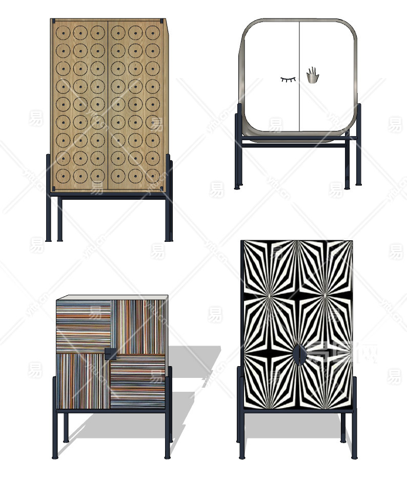 北欧现代欧式新中式装饰柜边柜,储物柜su草图模型下载