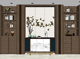 新中式端景柜,玄关柜su草图模型下载