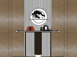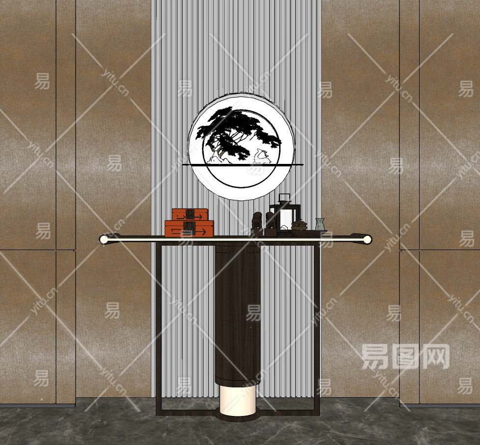 新中式轻奢端景条案su草图模型下载