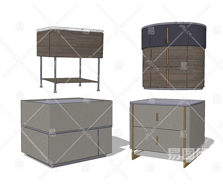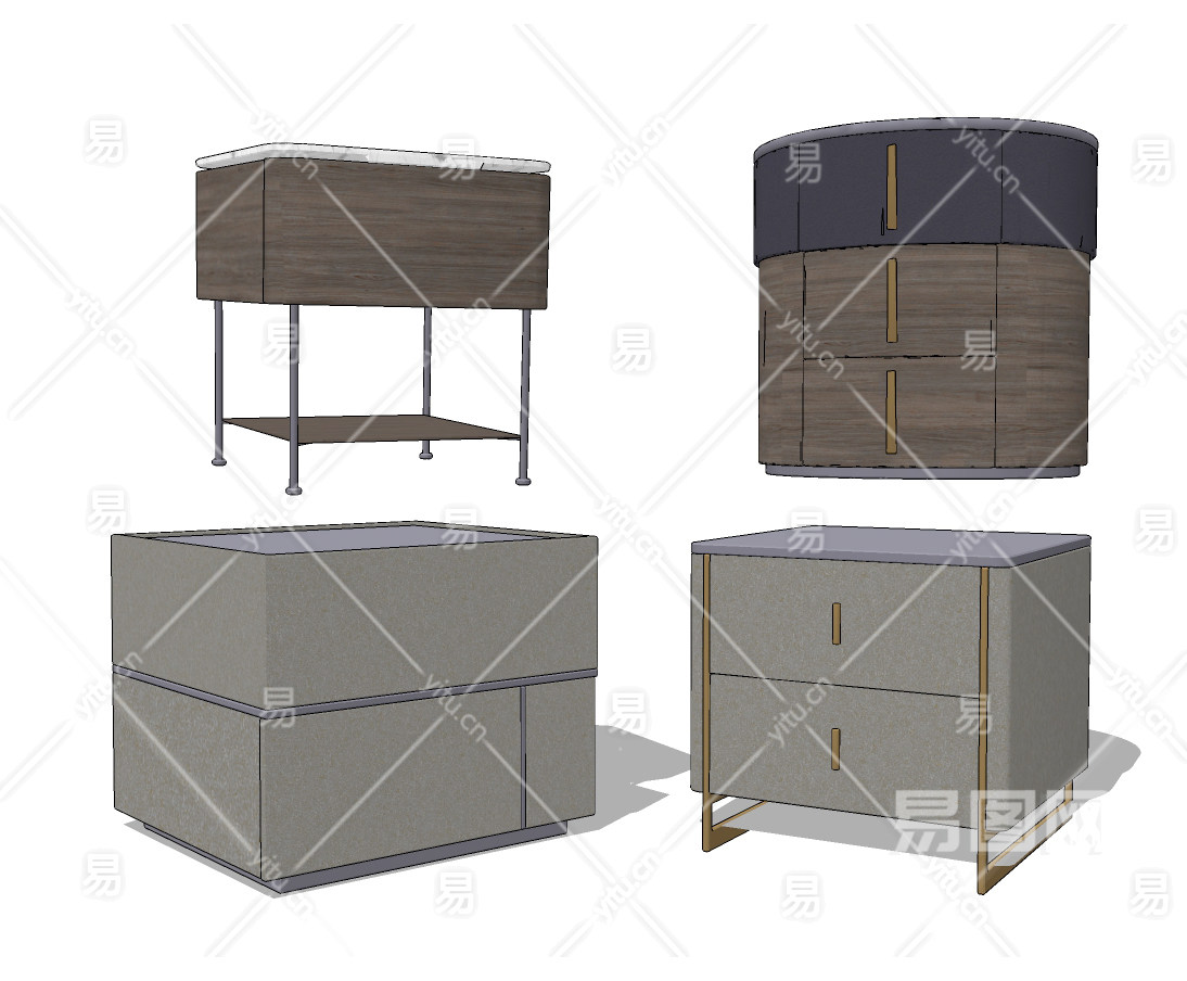 新中式床头柜su草图模型下载