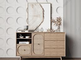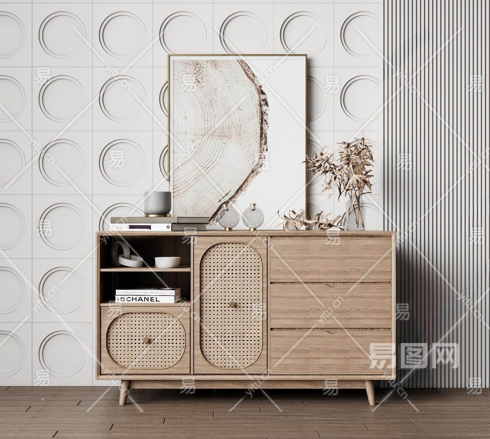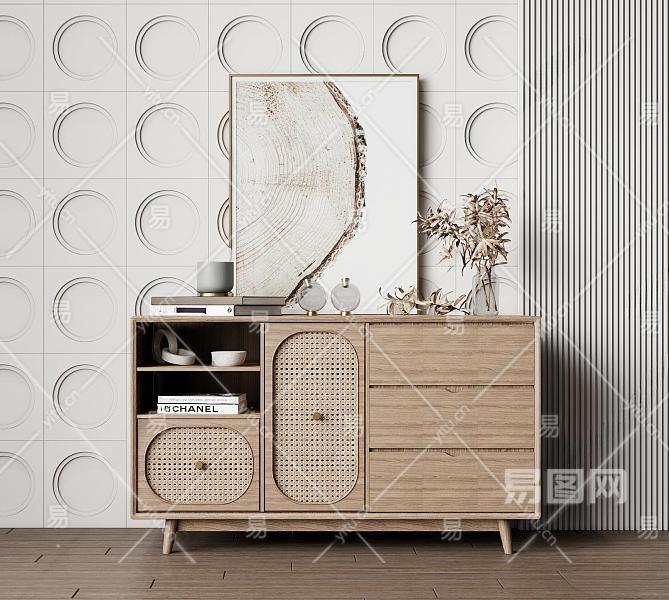 北欧玄关柜 装饰柜 木材 藤编