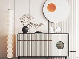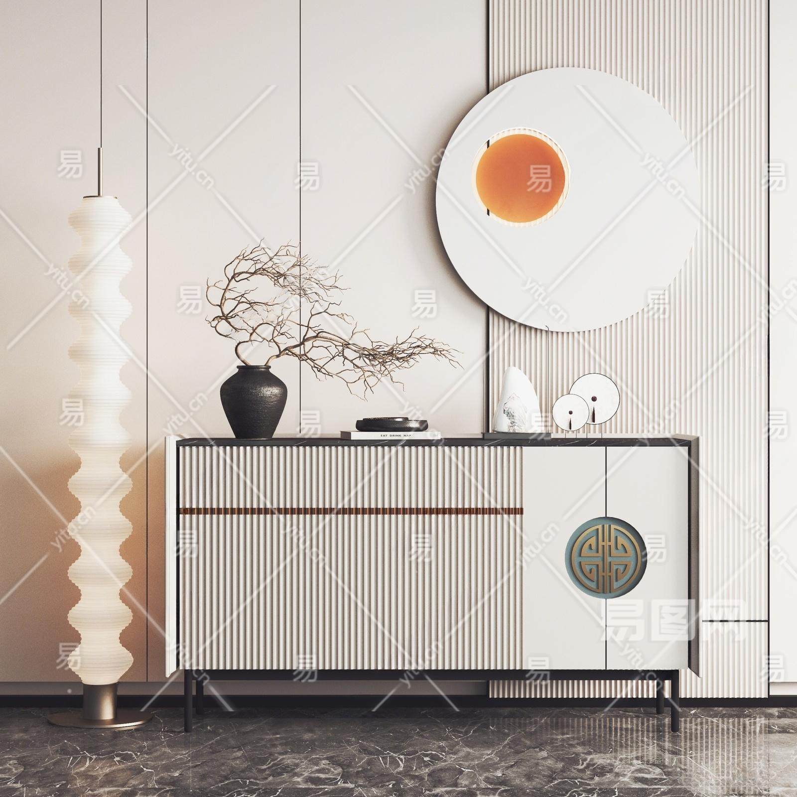 新中式玄关柜 装饰柜 陈设品 摆件 柜子 木材 石材