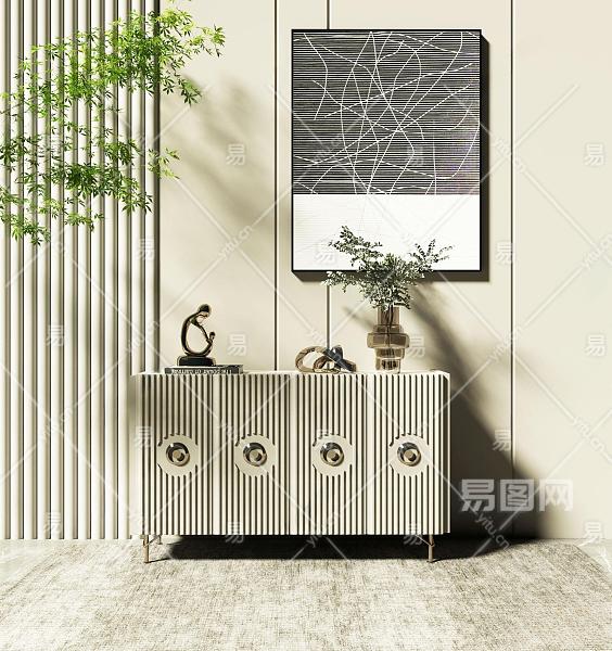 02侘寂风玄关柜,装饰柜,餐边柜,现代抽象挂画,装饰画,花瓶,人物雕塑摆件