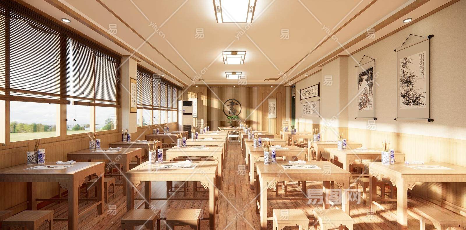 新中式书法 教室 实木