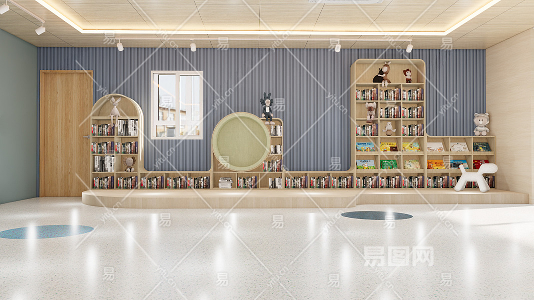现代幼儿园内部 幼儿园大厅 幼儿园图书角 幼儿园成列柜