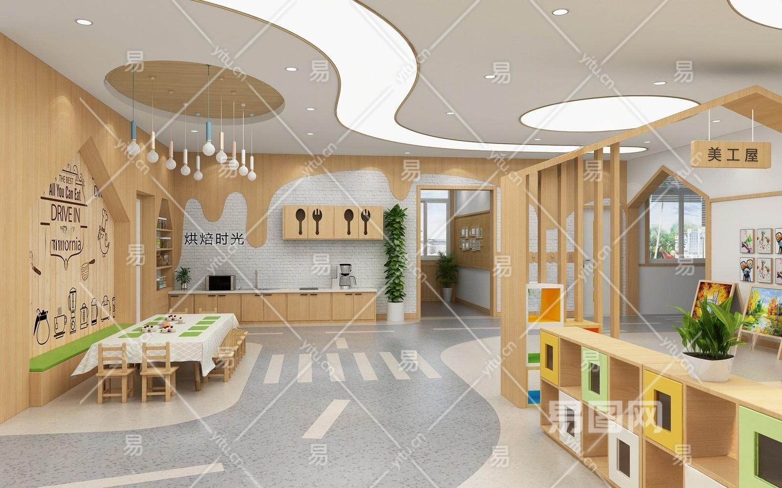 现代幼儿园烘培手工大厅公共区 烘培手工制作区 儿童玩耍区