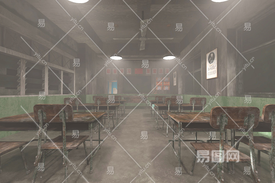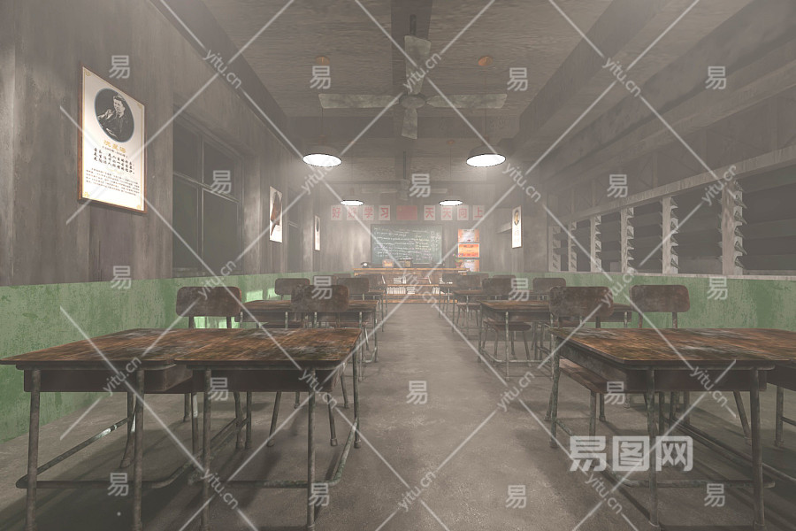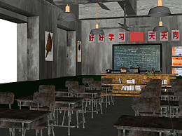 学校班级教室 工业loft 密室逃脱 教桌椅组合 讲台黑板讲台