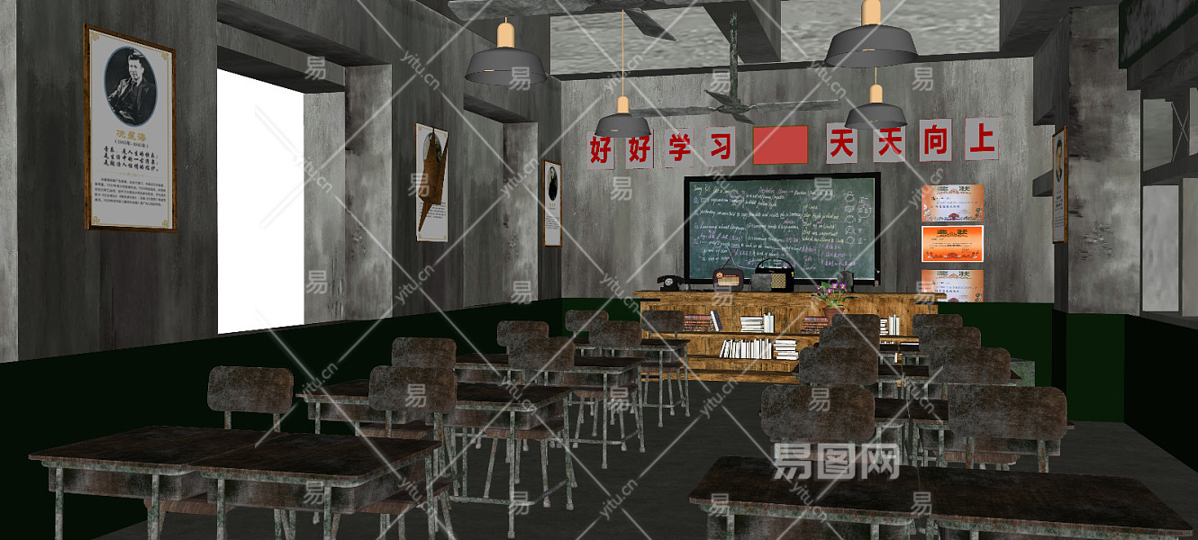 当前的位置:首页 > sketchup > sketchup模型 > 公共空间 > 学校 > 学校班级教室 工业loft 密室逃脱 教桌椅组合 讲台黑板讲台