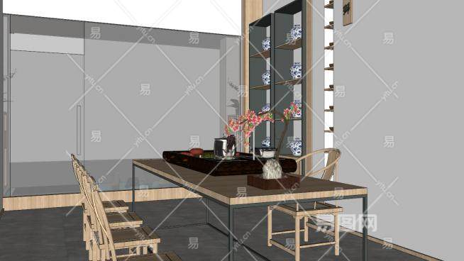 新中式茶室装饰SU模型下载_sketchup草图大师SKP模型