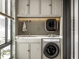 现代家居阳台 洗衣柜 洗衣机 电动晾衣架