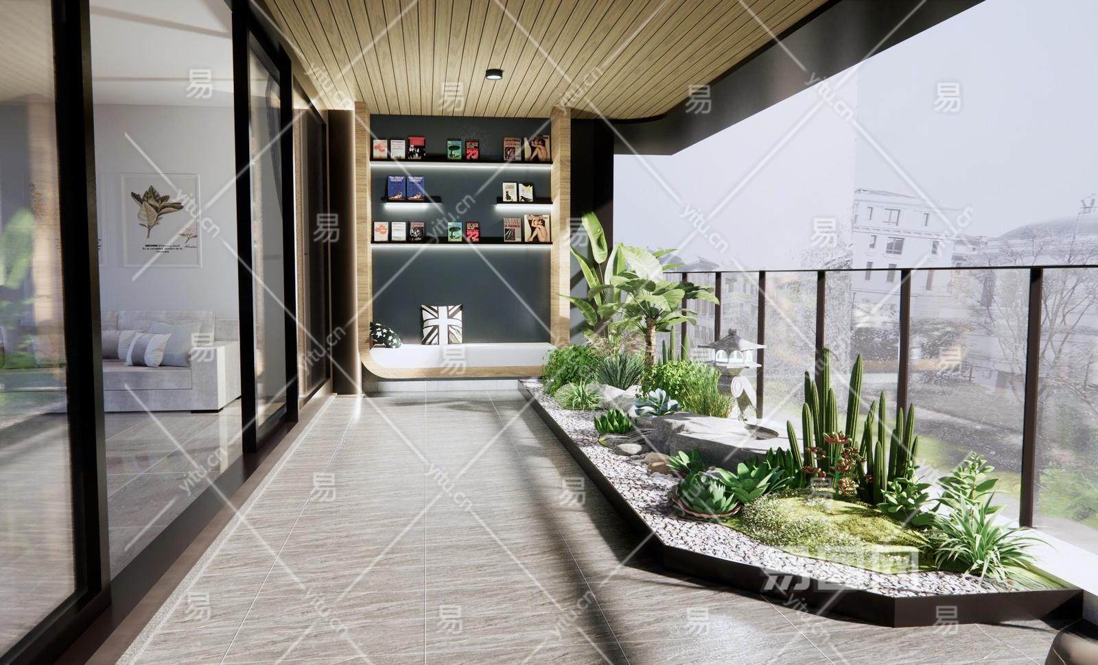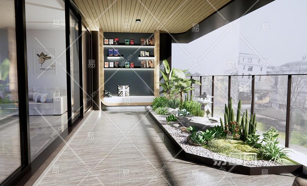现代家居阳台 阳台植物景观造景 花园阳台景观 假山水景