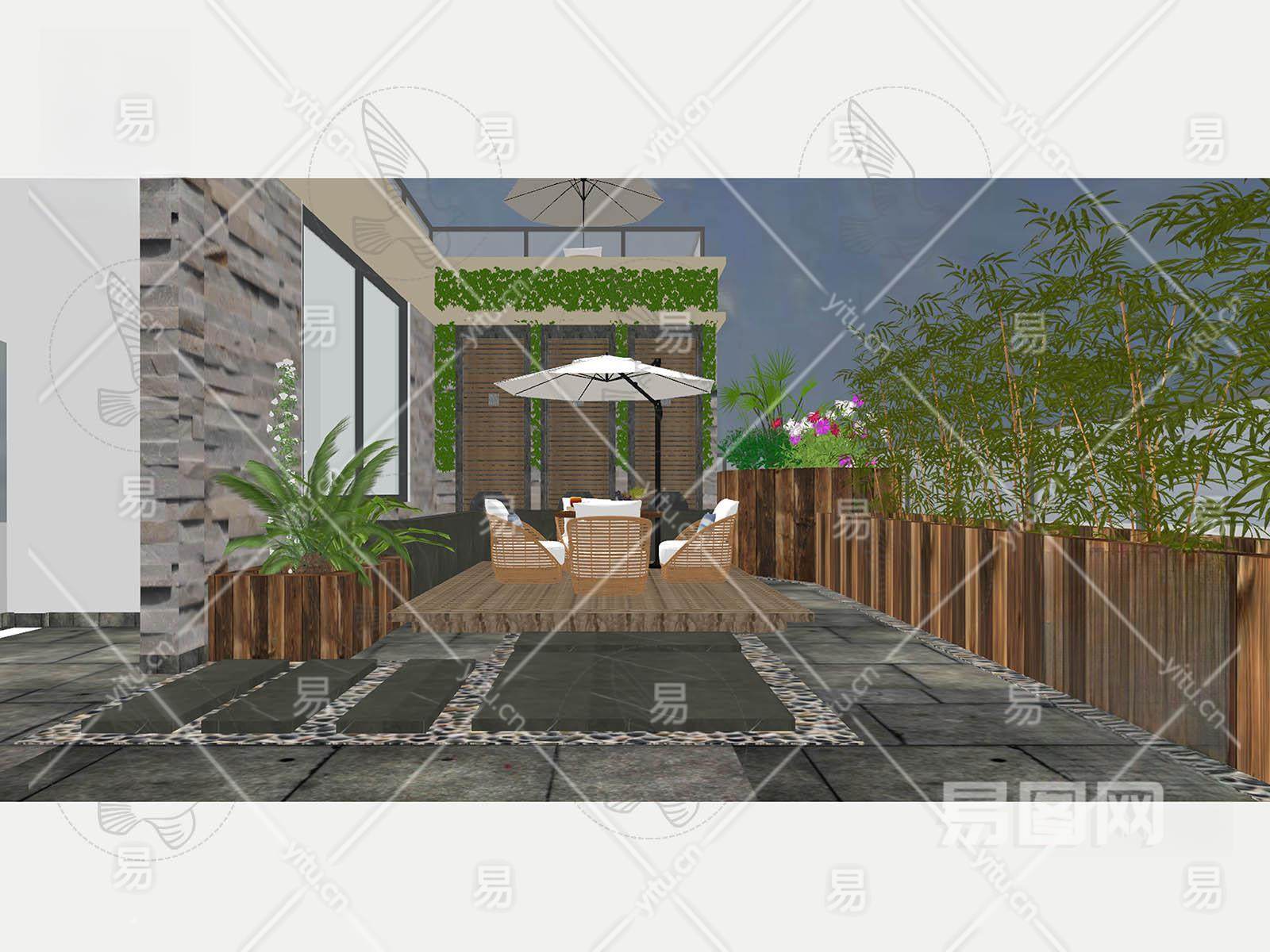 现代家居露台 盆栽 绿植 桌椅 伞座