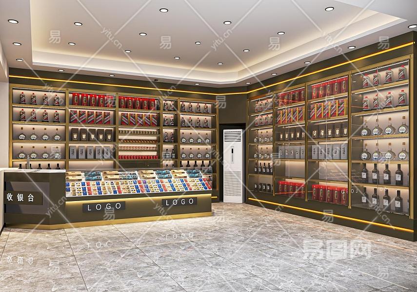 现代烟酒店 收银台 烟酒展柜 烟酒专卖店