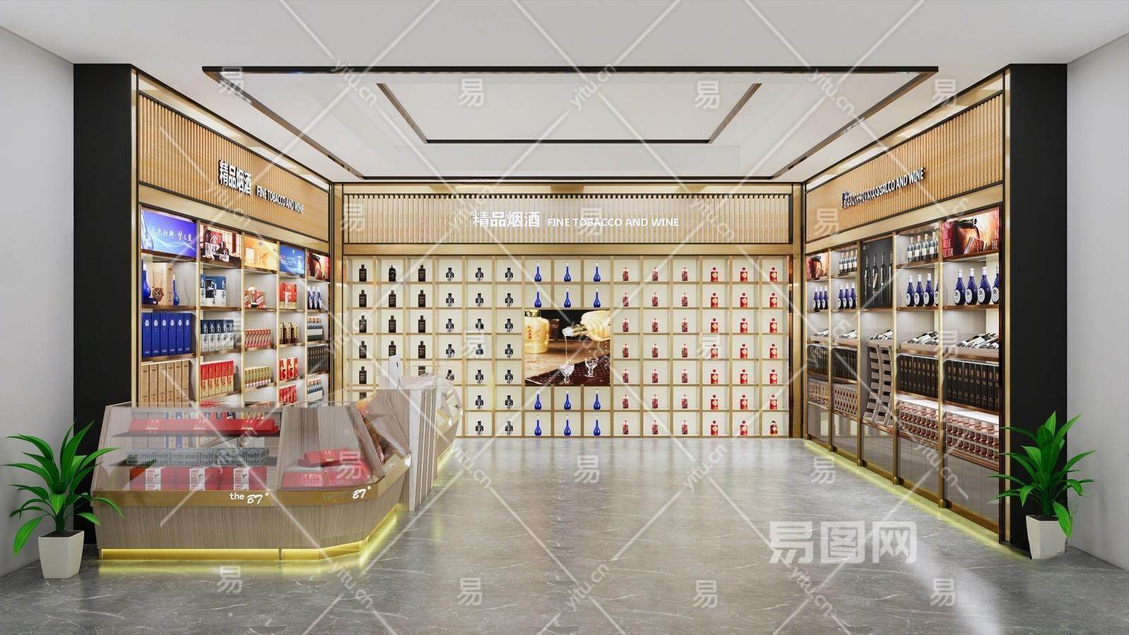 现代烟酒店 精品店 白酒 红酒 烟柜 服务台酒柜